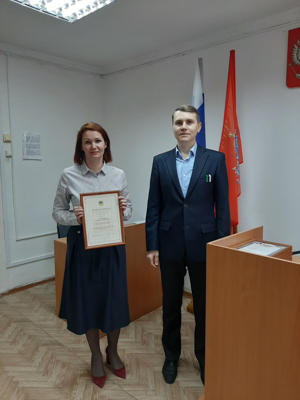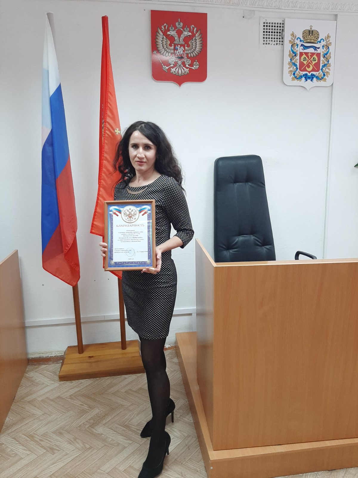 Мировой судья Канаков М.Н. вручил благодарственные письма за подписью председателя Гайского городского суда Карагодиной Е.Л. мировому судье судебного участка № 3 г.Гай Тафинцевой Т.Н. и сотрудникам аппаратов мировых судей судебных участков № 2, № 3 и Гайского района, за добросовестное отношение к своим должностным обязанностям.