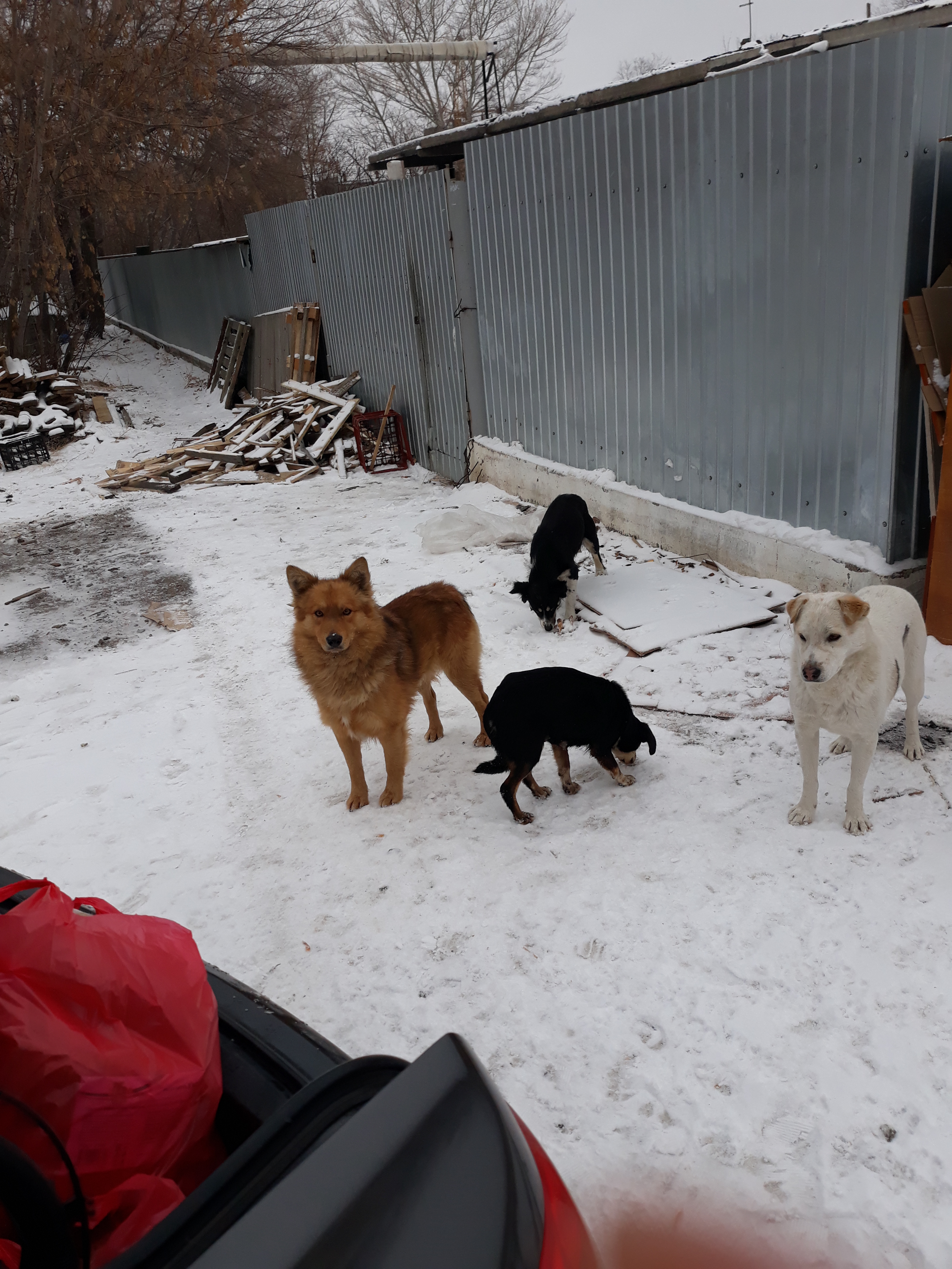 Благотворительного фонда "Виктория" приют для собак. Обитателя приюта радостно приняли все угощения, виляя хвостиками.
