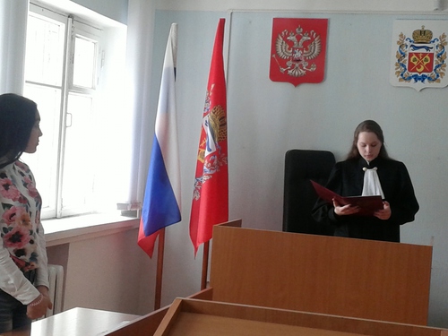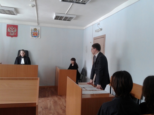 Данный вопрос изучался школьниками совместно с мировым судьёй в несколько этапов. Так, первым этапом в постижении этого сложного правового вопроса, было изучение законодательной базы, регулирующей гражданско-процессуальные правоотношения. На втором занятии школьники присутствовали в зале судебного заседания в качестве зрителей при рассмотрении мировым судьёй гражданского дела. После чего, школьники совместно с мировым судьёй разобрали все стадии гражданского процесса, обсуждались интересные моменты, которые прозвучали при рассмотрении реального гражданского дела. Заключительное занятие прошло в форме деловой игры, где участниками гражданского судопроизводства были сами школьники. Так, роль мирового судьи досталась Ершовой Елене, а секретарём судебного заседания была Зазулина Елена. Заманова Лия и Периков Александр взяли на себя роль истца и ответчика. Предметом судебного разбирательства стал спор между потребителем и индивидуальным предпринимателем. По мудрому решению участников процесса судебное разбирательство закончилось утверждением мирового соглашения.